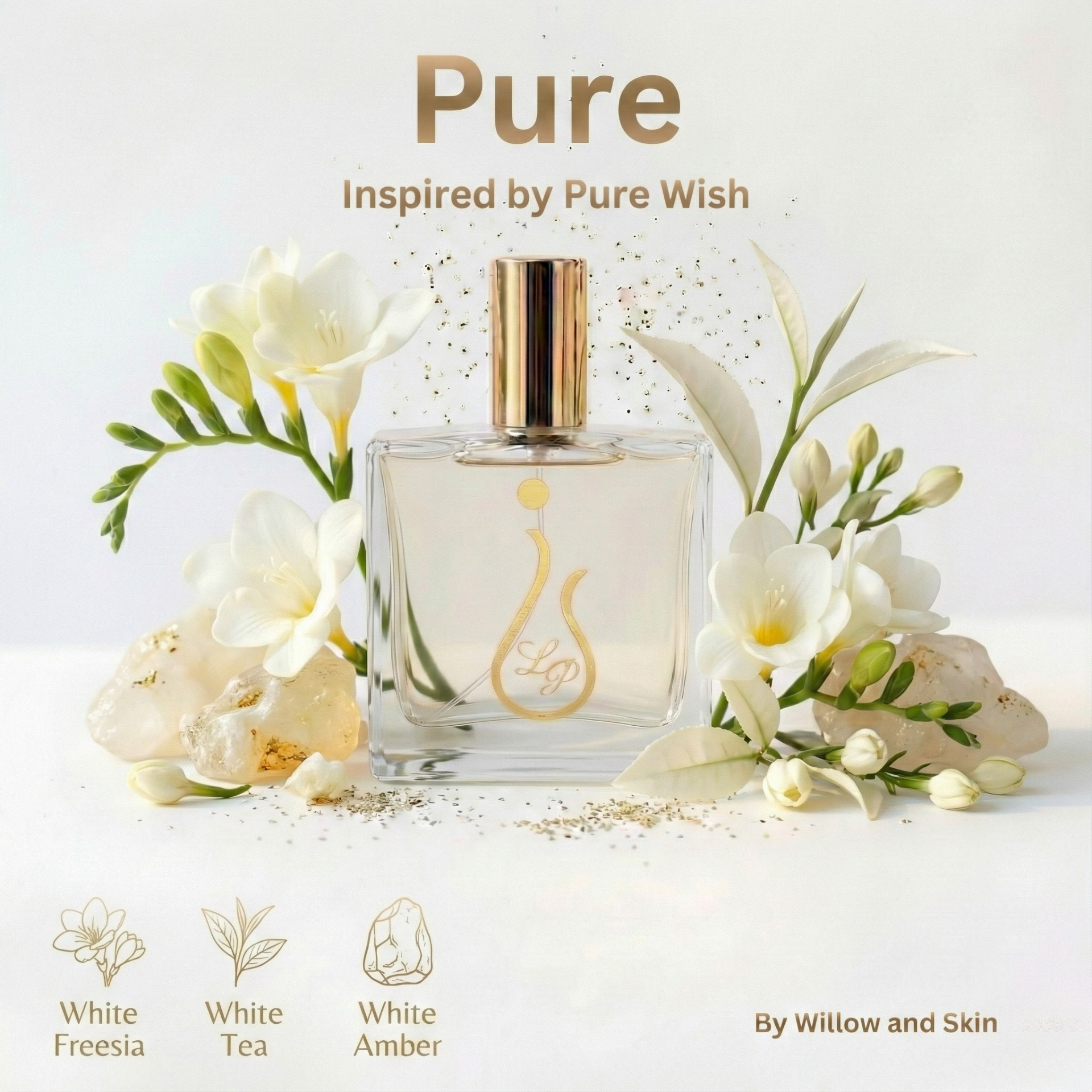 Pure is soft, comforting, and beautifully serene. It opens with a gentle touch of sweetness, then moves into a smooth amber-vanilla heart that feels warm, creamy, and quietly elegant. As it settles, soft woods and subtle musk wrap the fragrance in a clean, velvety finish that lingers close to the skin.